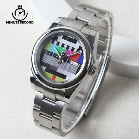 NH36 Watch DIY TV Malfunction Style Dial 50 Meter Waterproof Sapphire Crystal Oyster Administrative Strap NH36 Watch For Men
