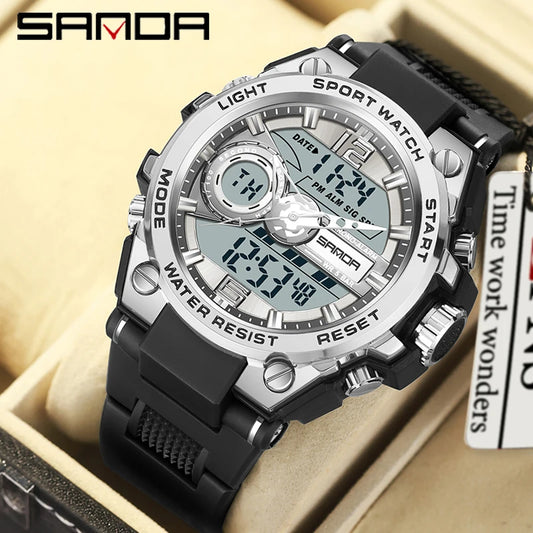 SANDA Luxury G Style Men's Electronic Watch Outdoor Sports LED Analog Digital Chronograph Military Dual Display 50M Waterproof