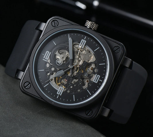 Men's Automatic Mechanical Watch Bell Brown Leather Black Ross Rubber 46mm Hollow AAA Large Dial Men's Watch
