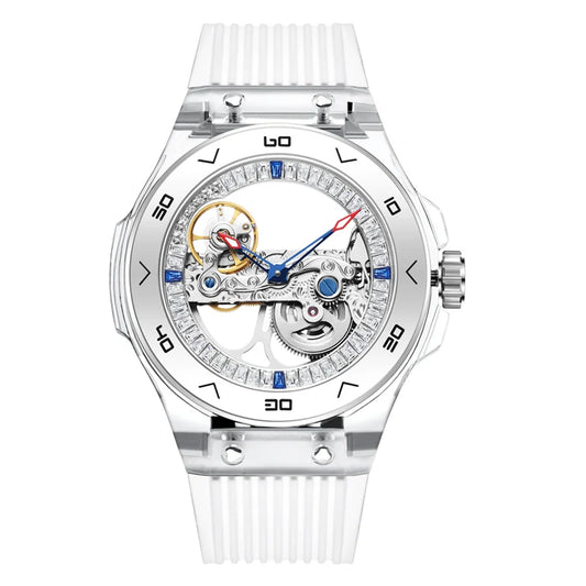 Women Luxury Watch 41.5mm Ladies Automatic Mechanical Wristwatch Waterproof Transparent Acrylic Case Ceramic Bezel