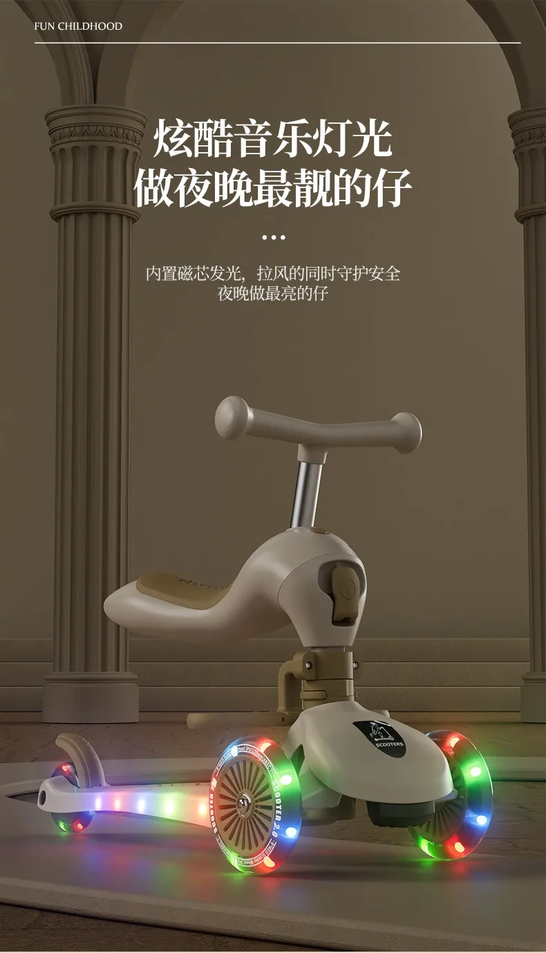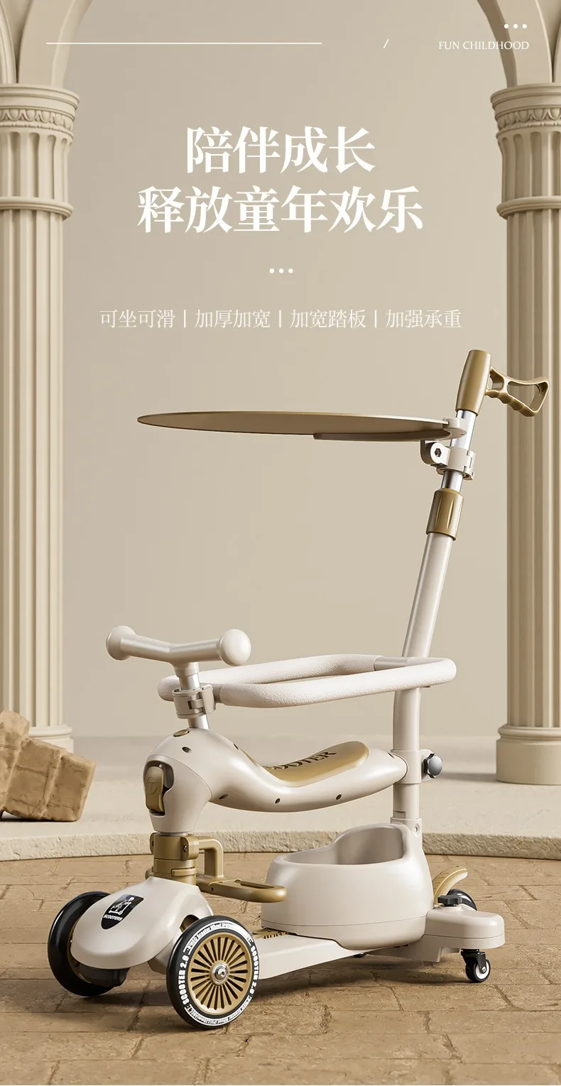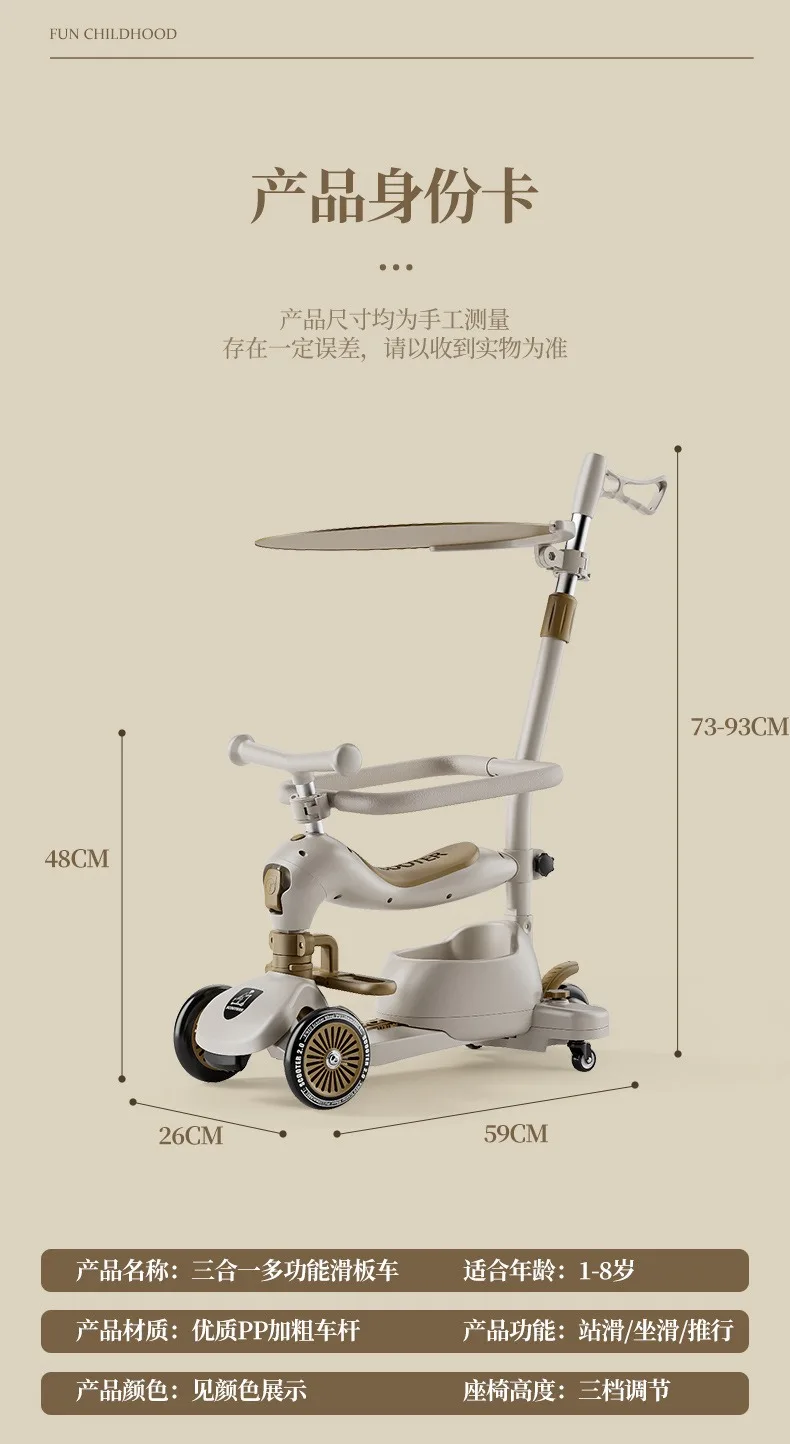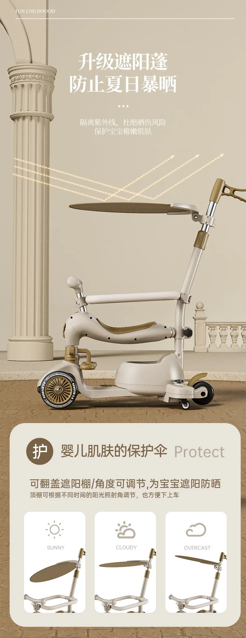 8 In1 Scooter for Children Folding 3 Wheel Skateboard Tricycle Baby Stroller Hoverboard With Fence Sunshade Music Kid Kickboard