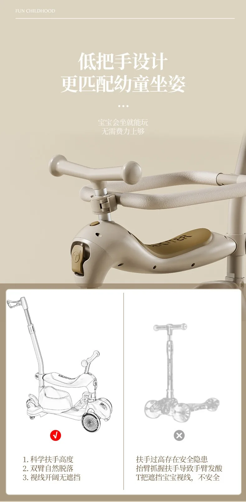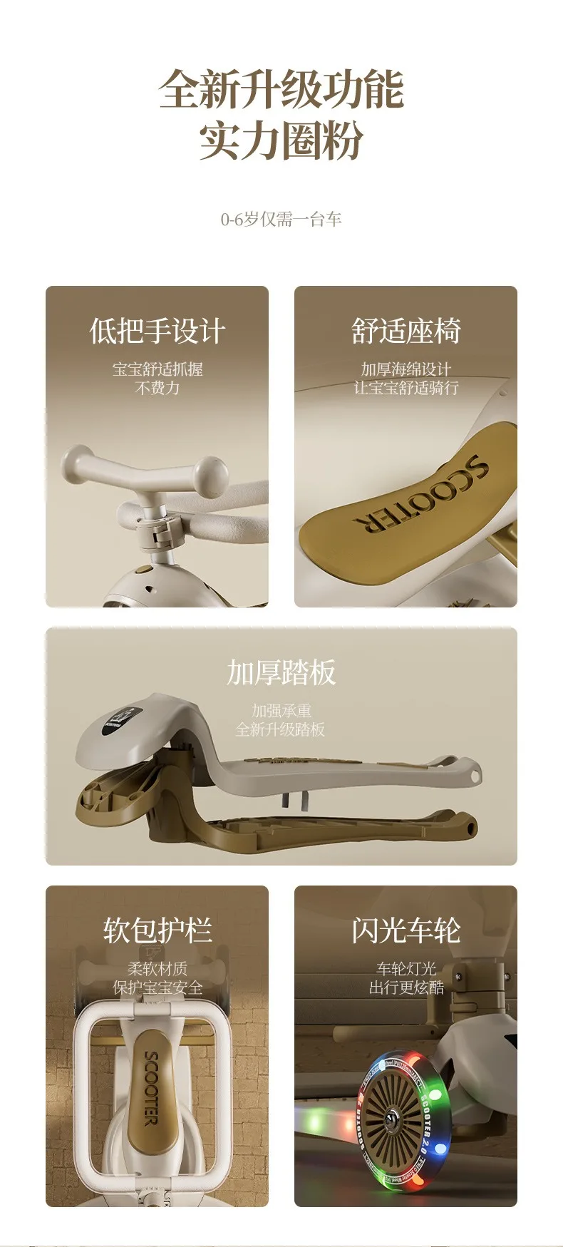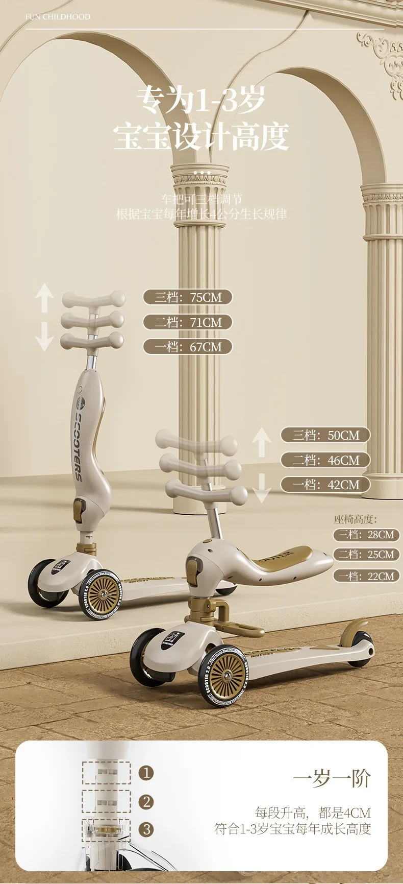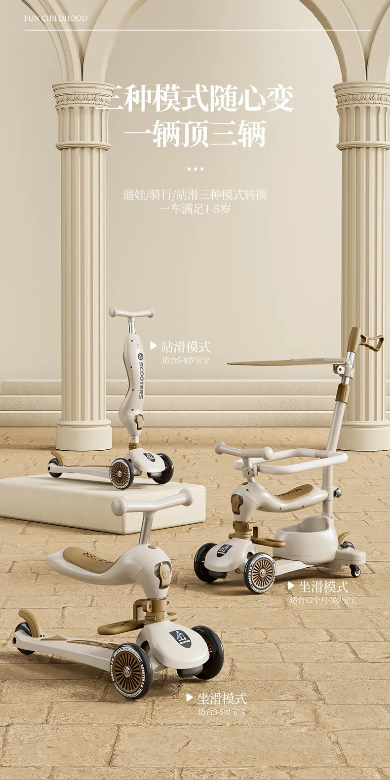 8 In1 Scooter for Children Folding 3 Wheel Skateboard Tricycle Baby Stroller Hoverboard With Fence Sunshade Music Kid Kickboard