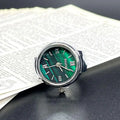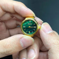 Stylish Design: Elevate your style with this elegant round green dial ring watch made from high-quality stainless steel. Its fashionable design is suitable for both men and women, adding a touch of sophistication to any outfit.