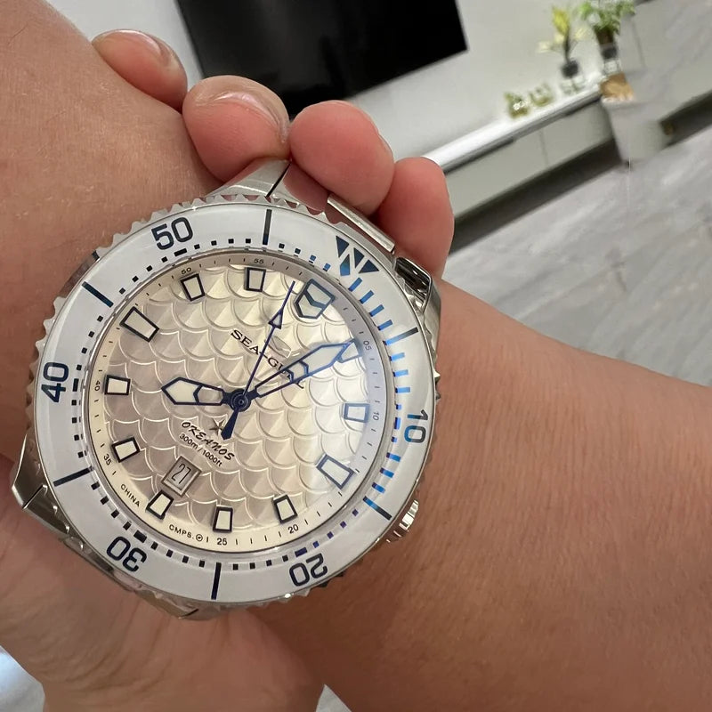 Seagull Dragon King Men's Automatic Mechanical Watch 44MM Sapphire Double Strap Diving Wristwatch with Dragon Scale Dial